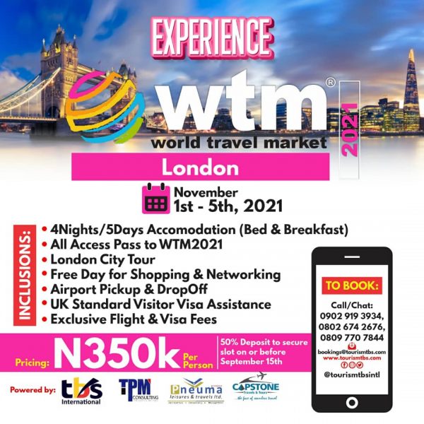 Early Bird Pricing starts from NGN #350,000 per person/adult
